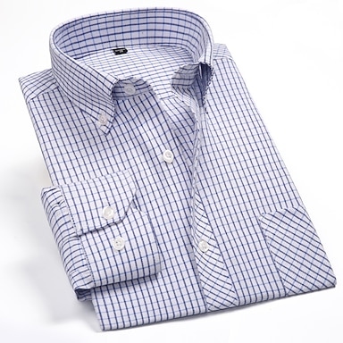 Herren Oberhemd Hemd Oxford Hemd Bügelfreies Hemd Gestreiftes Hemd Kariert / Gestreift / Chevron Hochzeit Büro & Karriere Hellblau Weiß Marineblau Königliches Blau Langarm Hemdkragen Ganzjährig