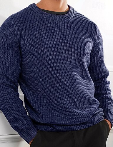 Herren Pullover Strickpullover Gerippt Stricken Normale Oberteile Gestrickt Einfach Rundhalsausschnitt Mode Basic Urlaub Alltagskleidung Bekleidung Herbst Winter Schwarz Weiß S M L