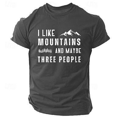 Herren Lustig Berg Buchstabendruck T Shirt T-Shirt 100% Baumwolle Kurzarm Grafik Hemd Schwarz Dunkelgrau Dunkelblau Bequemes T-Shirt Straße Sport im Freien Modedesigner-Kleidung