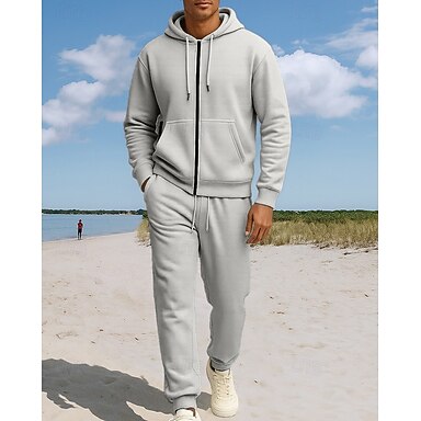 Herren Trainingsanzug Fleece Kapuzensweatshirt Zweiteilige Outfits Vollreißverschluss mit Tasche Einfarbig Kombination Herbst Winter Schwarz Armeegrün Outdoor Reise Sport Hohe Taille Thermowarm