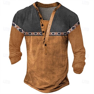 Herren Geometrisch Druck T Shirt Henley Hemd Langarm Designer Retro Vintage Ethnisch Straße Lässig Täglich Sommer Frühling Herbst Schwarz Grün Marineblau Braun Hellgrau Henley Henley T-Shirt