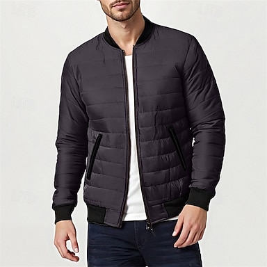 Herren puffer jacket Bomberjacke Gepolstert Zip Tasche Polyester Tasche Outdoor Verabredung Casual Standard Modisch Brautkleider schlicht warm Windundurchlässig Winter Glatt Dunkelgrau Schwarz