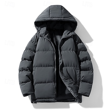 Herren Wintermantel Daunenjacke Gefütterte Jacke Tasche Polyester Urlaub Alltagskleidung Date Regulär Mode Lässig Bequem Thermowarm Winter Einfarbig Dunkelgrau Schwarz Weiß Gelb Pufferjacke