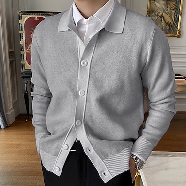 Herren Strickjacke Herbstpullover Kurzer Cardigan-Pullover Gerippt Stricken Normale Oberteile Gestrickt Einfach Revers Aufwärmen Moderne zeitgenössische Alltagskleidung Ausgehen Bekleidung Winter