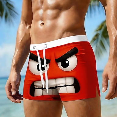 Herren Optische Täuschung 3D Zeichentrick Wütendes Gesicht Badeshorts Boardshorts Mittlere Taille Hawaiianisch Lustig Strandurlaub Kordelzug mit Mesh-Futter Elastischer Bund Designer Bekleidung