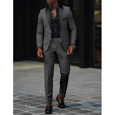Herren Hochzeit Party Anzüge Schalkragen Revers Schwarz Rosa Mode Alltag Einfarbige Taillierte Passform 2-teilig Einreiher Ein-Knopf