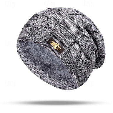 Herren Unisex Beanie Mütze Wintermützen Beanies Strickmütze Winter Beanie Schwarz Kaki Polyester Gestrickt Atmungsaktiv Gemütlich Alltagskleidung Ausgehen Karomuster Winddicht Warm