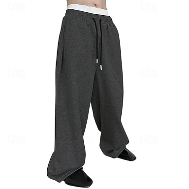 Herren Jogginghose Jogginghose mit weitem Bein Hose Baggy-Hosen Jogginghose mit offenem Saum Kordelzug Elastischer Bund Einfach Feuchtigkeitsableitend Atmungsaktiv Volle Länge Sport im Freien Lässig