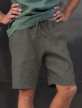 Herren Shorts Leinenshorts Sommershorts Strandshorts Kordelzug Elastischer Bund Einfach Komfort Atmungsaktiv Knielang Lässig Täglich Outdoor Urlaub Mode Schwarz Khaki Unelastisch