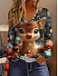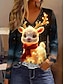 Weihnachten Damen Rentier Schneeflocke T-Shirt Grafik Tier Vintage Stilvoll Klassisch Langarm V-Ausschnitt Regelmäßige Tops Täglich Print Königsblau Dunkelgrün Gold Frühling Herbst Winter