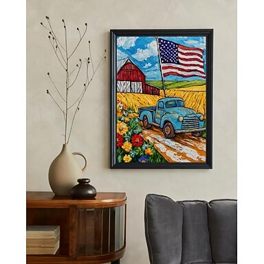Handgemaltes Ölgemälde auf Leinwand, Wanddekoration, amerikanische Agrarlandschaft mit Sternen und Streifen, gerollt, rahmenlos, ungespannt