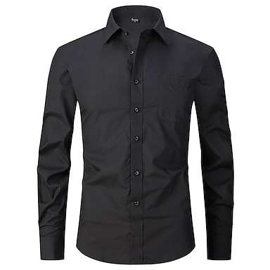 Herren Kleidhemd Bügelfreies Hemd Kragenhemd Knopfhemd Einfach Hochzeit Outdoor Schwarz Weiß Blau Purpur Langarm Umlegekragen Sommer Frühling Bekleidung Button-Down