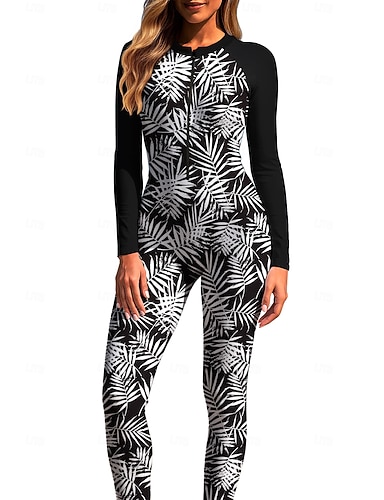 Damen Regulär Anti UV Shirt Ganzkörper-Rashguard Einteiliger Surfanzug Blumenmuster Tropisch Reißverschluss mit integriertem BH Frontreißverschluss UV-Sonnenschutz vollständige Bedeckung UPF50+