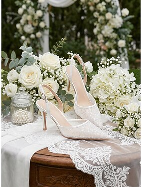 Elfenbeinfarbene, perlenbesetzte Slingback-Pumps für Damen – elegante Brautschuhe mit hohem Absatz für kirchliche Trauungen