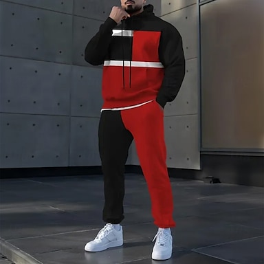 Herren Geometrisch Farbblock 2St 3D Sweatshirt-Sets Trainingsanzug Kapuzensweatshirt Langarm Lange Hosen Mit Kapuze Sportlich Alltagstauglich Athleisure 3D-Druck Frühling Herbst Winter Rote