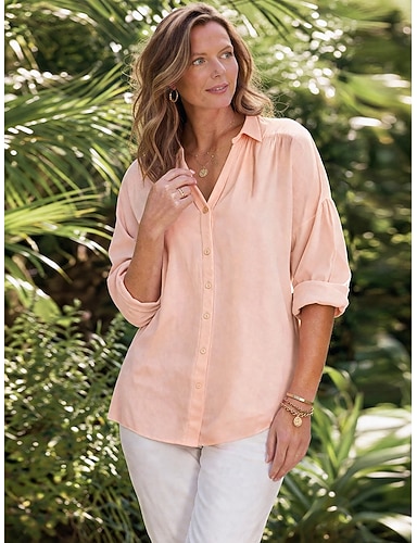 Damen Hemd Bluse Knöpfe Einfarbig Basic Lässig Langarm V Ausschnitt Normale Oberteile Täglich Weiß Rote Beige Sommer Frühling Herbst