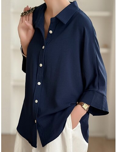 Damen Bluse Knöpfe Einfarbig Täglich Basic Lässig Dreiviertelarm Hemdkragen Normale Oberteile Täglich Schwarz Weiß Rote Violett Kamel Sommer Frühling