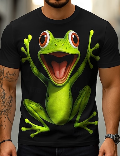 Herren 3D Frosch T Shirt Kurzarm T-Shirt 3D-Druck Rundhalsausschnitt Hemd Übertrieben Designer Party Ferien Schwarz Weiß Sommer Frühling Bekleidung S M L XL XXL XXXL