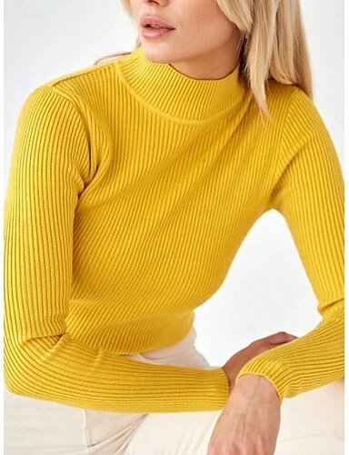 Damen Pullover Lässig Weich Einfarbig Gerippt Rollkragen Gestrickt Langarm Normale Oberteile Stricken Outdoor Täglich Wochenende Weiß Gelb Herbst Winter