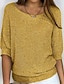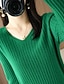 Damen Pullover Täglich Stilvoll Lässig Einfarbig Gerippt V Ausschnitt Gestrickt Dreiviertelarm Normale Oberteile Stricken Outdoor Täglich Gelb Armeegrün Sommer Frühling