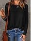 Damen Pullover Lässig Weich Einfarbig Gerippt Rundhalsausschnitt Gestrickt Langarm Normale Oberteile Stricken Outdoor Täglich Wochenende Schwarz Weiß Frühling Herbst
