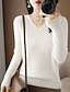 Damen Pullover Brautkleider schlicht Weich Einfarbig Gerippt V Ausschnitt Strick Langarm Normale Oberteile Stricken Outdoor Täglich Wochenende Weiß Gelb Herbst Winter