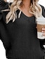 Damen Pullover Täglich Stilvoll Lässig Einfarbig Gerippt V Ausschnitt Gestrickt Langarm Normale Oberteile Stricken Täglich Ferien Ausgehen Schwarz Weiß Herbst Winter
