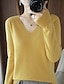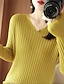 Damen Pullover Mode Einfarbig Gerippt V Ausschnitt Gestrickt Langarm Normale Oberteile Stricken Ferien Ausgehen Wochenende Schwarz Gelb Herbst