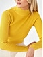 Damen Enge Oberteile Einfarbig Einfach Elegant Damen Stilvoll Langarm Hoher Ausschnitt Normale Oberteile Arbeit Täglich Ausgehen Drapiert Schwarz Gelb Braun Aprikose Herbst Winter