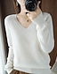Damen Pullover Elegant Mode Niedlich Einfarbig V Ausschnitt Gestrickt Langarm Normale Oberteile Stricken Outdoor Täglich Ferien Weiß Gelb Herbst Winter