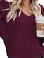 Damen Pullover Streetwear Lässig Einfarbig V Ausschnitt Gestrickt Langarm Normale Oberteile Stricken Täglich Ausgehen Wochenende Weinrot Gelb Herbst Winter