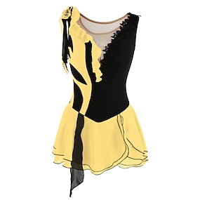 Eiskunstlaufkleid Damen Mädchen Eislaufen Kleider Austattungen Schwarz Weiß Gelb Gitter Spandex Hochelastisch Ausbildung Praxis Wettbewerb Eiskunstlaufkleidung Kristalle Ärmellos Eislaufen