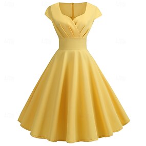 Retro Vintage 1950er Hepburn Swing-Kleid Ausgestelltes Kleid Einfarbig Kostüm Damen Halloween Maskerade Alltagskleidung Junggesellinnenabschiedsparty Erwachsene Kleid Abschlussballkleider