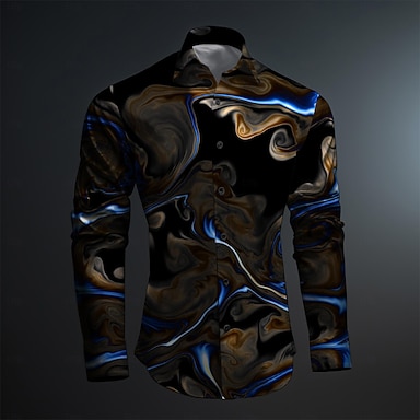 Herren Geometrisch Marmor Abstrakte Kunst Satinhemd Kleidhemd Langarm Modisch lässig Urlaub Ferien Sommer Frühling Herbst Umlegekragen 3D-Druck Hemden mit Knopfleiste Gelb Blau Purpur Braun