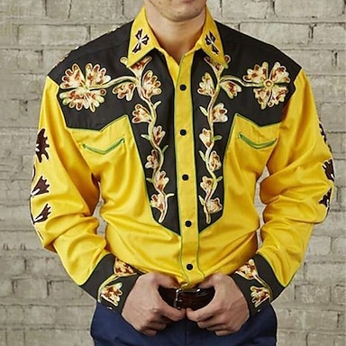 Herren Blumen Grafik-Drucke Hemd Westernhemd Cowboy-Shirt Langarm Modisch Designer Brautkleider schlicht Outdoor Täglich Herbst Winter Umlegekragen Bedruckt Button-Down Gelb Rote Purpur Grün Blau