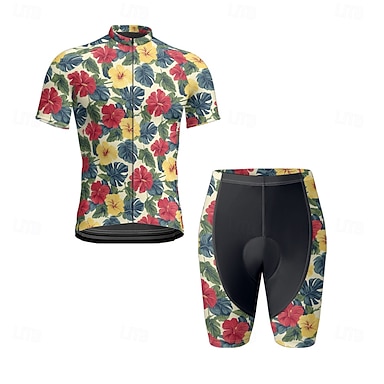 Herren Radtrikot mit Shorts Kurzarm Mountainbike MTB Straßenradsport Sommer Frühling Herbst Blau Gelb Rote Blumenmuster Fahhrad Frontreißverschluss Schweißableitend Bequem Atmungsaktiv Spandex Sport