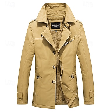 Herren Fleecejacke Parka Trenchcoat Urlaub Täglich Herbst Winter 100% Baumwolle Thermowarm Oberbekleidung Bekleidung Mode Klassisch Einfach Tasche Revers Einreihig
