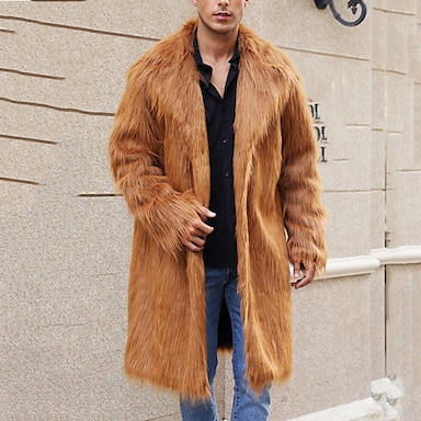 Herren Winterjacke Kunstpelzmantel Urlaub Täglich Thermowarm Fleece Herbst Winter Einfach Mode Streetwear Revers Lang Schwarz Weiß Gelb Braun Grau Jacken