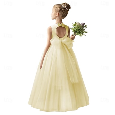 Mädchenkleid, einfarbig, ärmellos, für festliche Anlässe, Hochzeiten, Prinzessinnenkleid, wadenlanges Etuikleid aus Mesh, Tüllkleid, Blumenmädchenkleid, Sommer, Frühling, Herbst, 4-13 Jahre, weiß, gelb, rosa