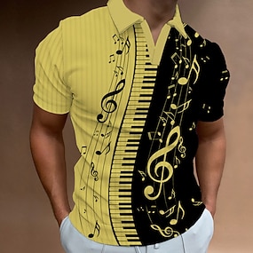 Musikfestival Herren Musik Poloshirts Golfshirt Kurzarm Polo-Shirts V Ausschnitt Lässig Urlaubskleidung Festivalkleidung Party-Outfits 3D-Druck Weiß Gelb Blau