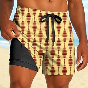 Herren Geometrisch Gefütterte Shorts 2 in 1 Badeshorts Badeshorts Mittlere Taille Hawaiianisch Ferien Seitentaschen Mit Kompressionsfutter Elastischer Kordelzug in der Taille Designer Bekleidung