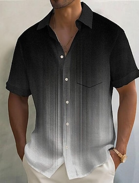 Herren Farbverlauf Geometrisches Muster Knopfhemd Bedruckte Hemden Kurzarm Hawaiianisch Resort Outdoor Geschäft / Zeremonie / Hochzeit Sommer Umlegekragen Druck Button-Down Schwarz
