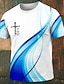 „Im Namen Jesu liegt Kraft“ Herren-T-Shirt mit Bibel-Kreuz-Grafik, Allover-Print, weiß-blauer Farbverlauf, Rundhalsausschnitt, Kurzarm, christliches Geschenk, Designer-Kleidung