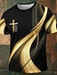 Herren Grafik Tiermotiv Löwe Flügel Templer Kreuz T Shirt T-Shirt 3D-Druck Rundhalsausschnitt Hemd Mode Religiös Athleisure Straße Sport im Freien Schwarz Gold Sommer Frühling Bekleidung S M L XL XXL