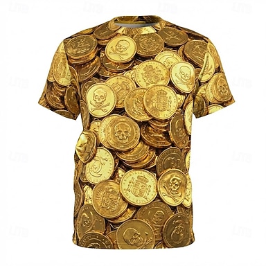 Herren Optische Täuschung 3D Geld T Shirt Kurzarm T-Shirt 3D-Druck Rundhalsausschnitt Hemd Übertrieben Designer Täglich Club Party Schwarz Weiß Gold Sommer Frühling Ganzjahres Bekleidung S M L XL XXL