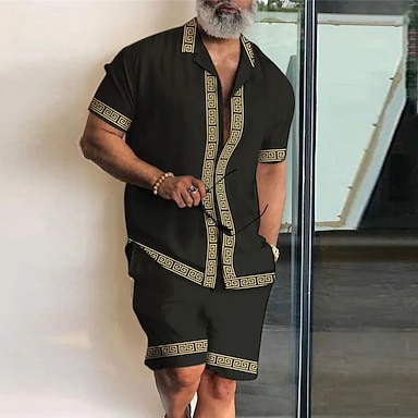 Herren Totem 2St Hemden-Sets Sommer Hawaiihemd Kurzarm Kurze Hosen Kubanisches Halsband Mode Streetwear Designer Outdoor Straße Täglich Druck Sommer Frühling Schwarz Gelb Gold