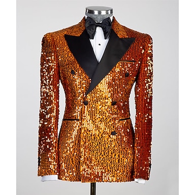 Herren Blazerjacke Smoking Verschlusskragen Party Glitzern Pailletten Einfarbig Schwarz Silber Champagner Figurbetonter Schnitt Doppelreihig Sechs-Knöpfe