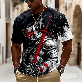 Herren Crusaders Mittelalter Ritter Krieger mit Schwert Fantasy Gothic Streetwear T-Shirt Allover-Druck Regular Fit Aufgeteilt Schwarz Weiß Design Designer Bekleidung