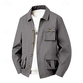 Herren Leichte Jacke Cargo-Jacke Freizeitjacke Urlaub Täglich Wasserdicht Tasche Frühling Herbst Einfach Mode Klassisch Revers Regulär Schwarz Marineblau Khaki Armeegrün Grau Jacken