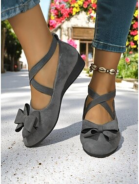 Ballerinas mit Schleife und gekreuzten Riemen für Damen – Wildlederimitat, perfekt für Freizeitausflüge, zum Einkaufen und für den Alltag
